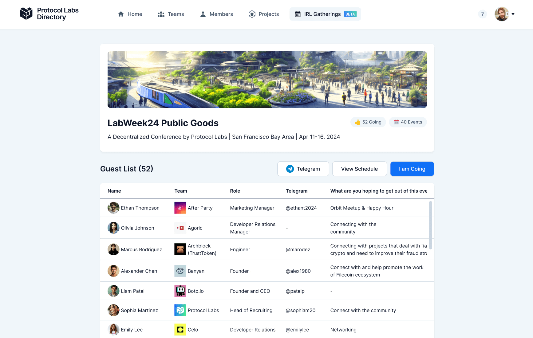 Help founders of portfolio companies connect at crypto conferences by seeing who from their network was planning to attend, what they wanted to connect on, and how to get in contact before the conference started.